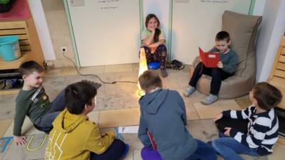 Im Rahmen der Lesewoche wurde den Schülerinnen und Schülern aber noch viel mehr geboten. So hielten einige Lehrkräfte wieder das beliebte Lesekino ab. Hierbei wurden die Klassenzimmer in Lesekinosäle verwandelt. Die Kinder suchten sich anhand von selbst gestalteten Leseplakaten Lesekinokarten aus. Anhand des Tickets konnten sie dann den entsprechenden Saal besuchen. Dort lasen die Lehrerinnen und Lehrer aus den Lieblingsbüchern der Kinder vor. Sehr motivierend war auch das Tandemlesen für die Kinder. Dabei zeigten die „Großen“ ihre Lesefertigkeiten und lasen den Kleineren vor. Einige Klassen fertigten auch eigene Stücke an und trugen sie interessierten Zuhörern vor.