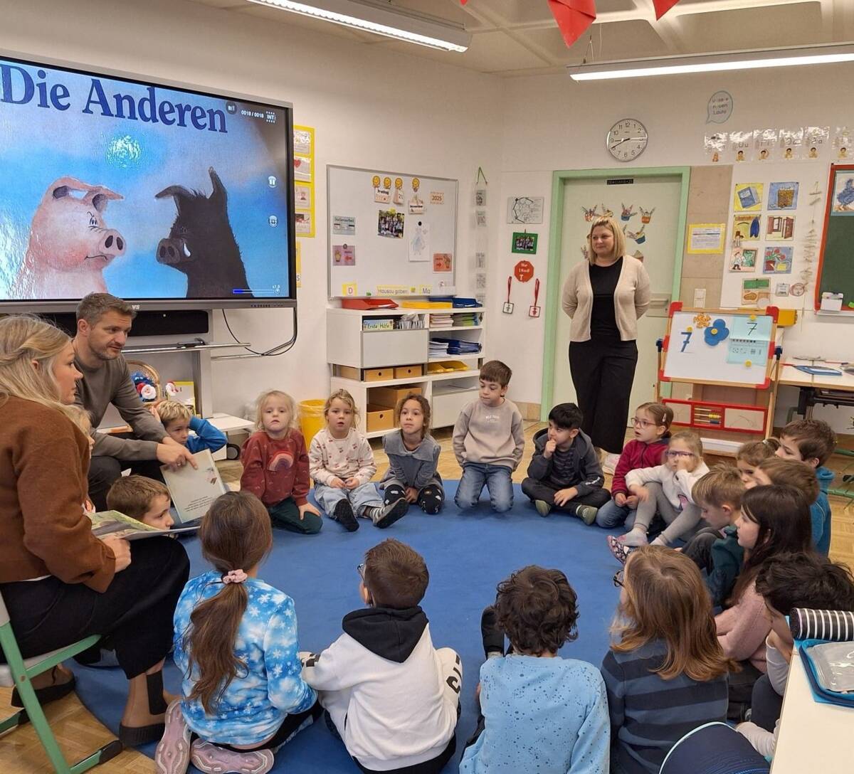 Ein weiterer Höhepunkt der Lesewoche fand dann am bundesweiten Vorlesetag, dem 21. November 2025 statt. Zahlreiche Vorleserinnen und Vorleser aus dem gesamten Schulverband fanden sich ein, um den Kindern in den einzelnen Klassen vorzulesen. So durften die Schülerinnen und Schüler den 1. Bürgermeister der Gemeinde Eching, Max Kofler, sowie die Gemeinderätinnen und -räte, Sigrid Maier, Regina Ganslmeier, Marie-Theres von Preysing, Jakob Augustin aus den Gemeinden Eching und Tiefenbach, den Schulleiter, Peter Lang, die Leiterin der Schulbücherei, Barbara Pfeilstetter und Herrn Rudi Feldmaier in ihren Klassenzimmern begrüßen.