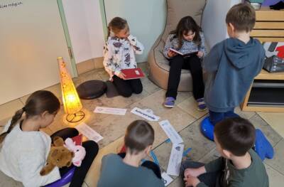 Im Rahmen der Lesewoche wurde den Schülerinnen und Schülern aber noch viel mehr geboten. So hielten einige Lehrkräfte wieder das beliebte Lesekino ab. Hierbei wurden die Klassenzimmer in Lesekinosäle verwandelt. Die Kinder suchten sich anhand von selbst gestalteten Leseplakaten Lesekinokarten aus. Anhand des Tickets konnten sie dann den entsprechenden Saal besuchen. Dort lasen die Lehrerinnen und Lehrer aus den Lieblingsbüchern der Kinder vor. Sehr motivierend war auch das Tandemlesen für die Kinder. Dabei zeigten die „Großen“ ihre Lesefertigkeiten und lasen den Kleineren vor. Einige Klassen fertigten auch eigene Stücke an und trugen sie interessierten Zuhörern vor.