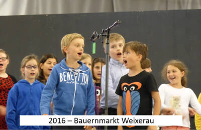 Natürlich sorgt der Chor bei Schulveranstaltungen für den passenden musikalischen Rahmen und gute Stimmung. Aber auch in der Welt da draußen genießt er einen hervorragenden Ruf. Das Ensemble wird von Kommunen, Vereinen und der Kirche gerne zur musikalischen Umrahmung von Veranstaltungen eingeladen. Meist sind es um die zehn Auftritte pro Schuljahr. Die Teilnahme daran ist grundsätzlich freiwillig. Fast alle Chorkinder lieben es, auf der Bühne zu stehen. Das größte Event ist das Sommerkonzert auf einer richtig großen Bühne vor einem vollbesetzten Saal.